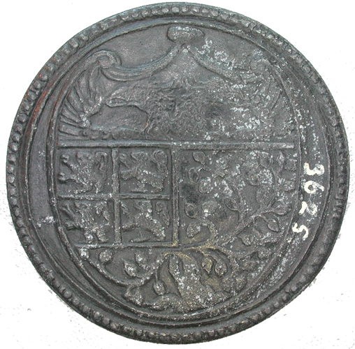 Vz: binnen een parelrand en een getrokken rand, het Bossche stadswapen met daarbo¬ven een dubbelkoppige adelaar