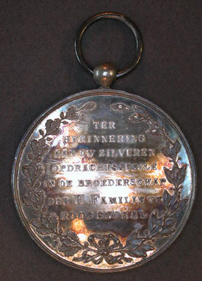 Zilveren jubileumpenning der broederschap der H.Familie te Roosendaal. Draagpenning