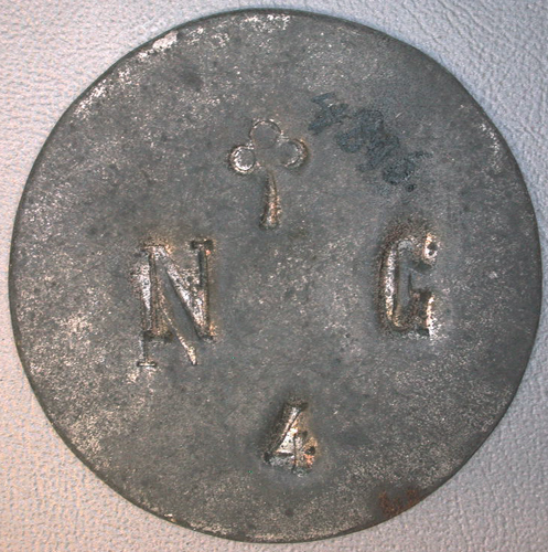 - BeschrijvingBlikken plaatje van 4 laken voor de bevrijde zwarte mannen te Suriname, welke wekelijks tegen geld werden ingewisseld. De plaatjes van de mannen waren rond, die van de vrouwen waren vierkant.