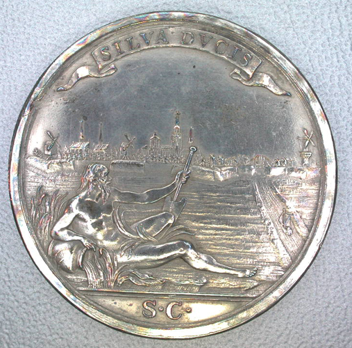 Vz:gezicht op de stad van de Vughterzijde; boven de stad het stadswapen in de wolken; op een banderol het opschrift: SI SENATUS POPULO ET POPULUS SENATUI UTERQUE FELIX