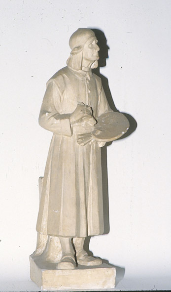 - BeschrijvingVoorstudie voor het beeld van Hieronymus Bosch dat op de markt in Den Bosch is geplaatst