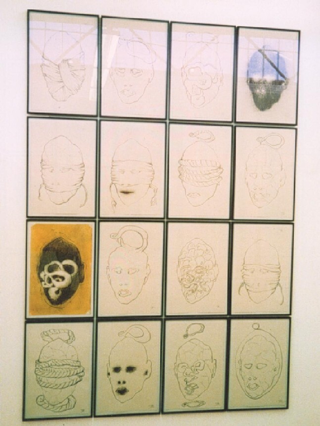 - BeschrijvingZestien ingelijste pentekeningen van hoofden en verwante vormen die samen één werk vormen.
