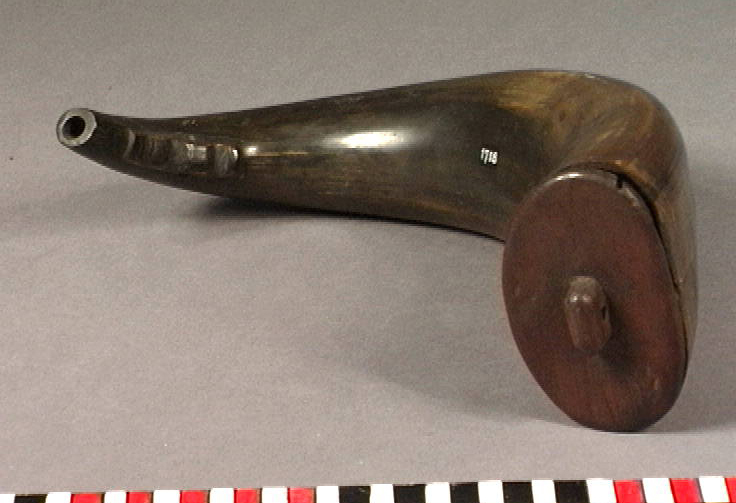 Kruithoorn, vervaardigd uit een horen van een bantam