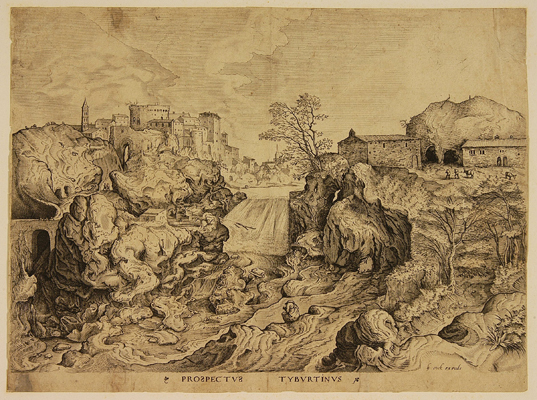 - BeschrijvingOnderschrift: "PROSPECTVS TYBVRTINVS" 2de staat (van 3)