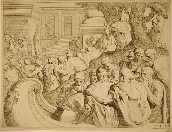 - Beschrijving1 van de 58 gravures uit de reeks: "Les traveaux d'Ulisse, peints à Fontainebleau par le Primatice", 1633