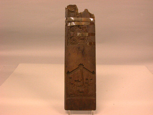 Op de voorzijde: 1. koets met koetsier, paard en dame; 2. stalletje van Betlehem met Maria, Jozef, het Kindje en de drie koningen. Op de achterzijde: 1. zeemeermin (op zijn kop); 2. adelaar; 3. engel; 4. kat; 5. hond; 6. lam; 7. koe (op zijn kop); 8. zwaan; 9. edelman; 10. edelvrouw; 11. haan; 12. slee; 13. molen (op zijn kop); 14. wikkelkind; 15. apotheker; 16. marskramer (op zijn kop); 17. zeilschip; 18. man met mand aan stok over schouder (op zijn kop); 19. vrijage tussen man en vrouw; 20. kanon; 21. mand; 22. vrijage tussen man en vrouw.