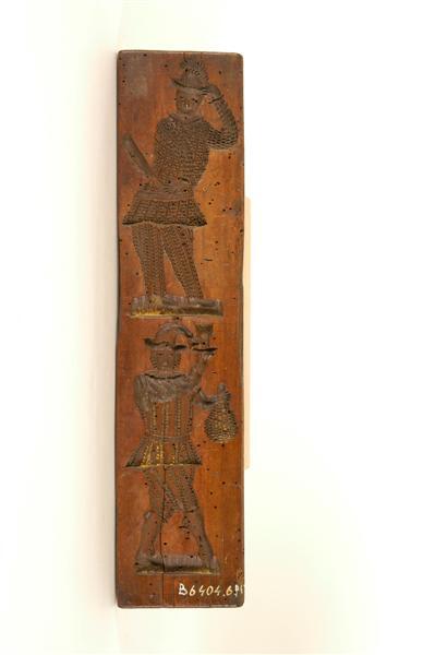 - TitelSpeculaasplank met voorstelling van paljas en pulchinelle