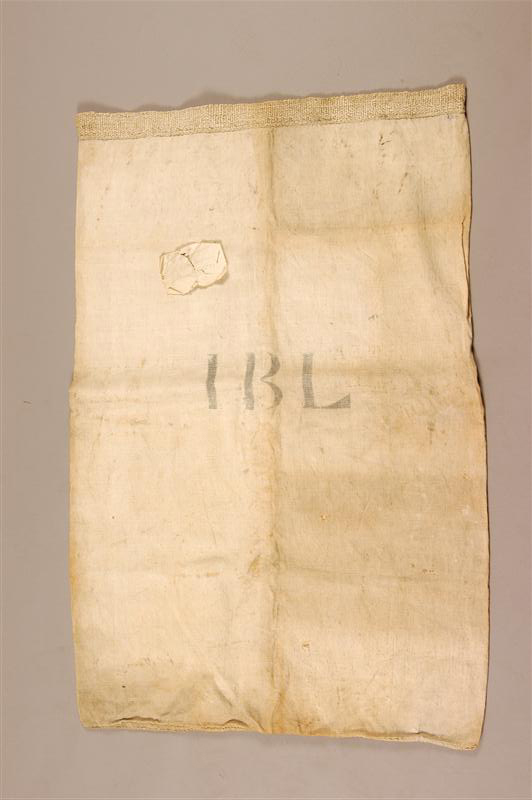Zak van wit linnen, aan de bovenzijde afgezet met een rand van wit grof geweven linnen. Met de hand genaaid. Op de ene zijde zijn de letters "JBL" in zwart gestempeld, op de andere zijde het getal "1831". Bovenaan de lengtenaad is een touwtje geknoopt. Aan de zak is een briefje gespeld met het volgende opschrift: "J B.Lathouwers/te Bokhoven/ g..anszak 1831" (laatste woord onduidelijk). (Briefje nu los bijgevoegd)