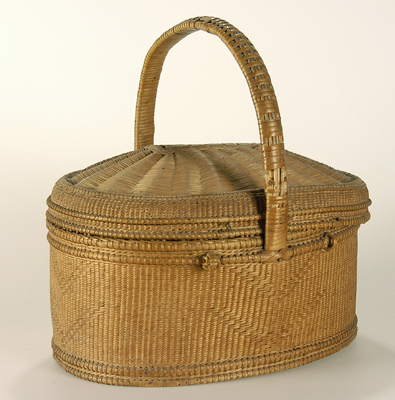 - BeschrijvingOvaal model met rechte wand, aan lange zijde scharnierende klep en recht opstaand handvat