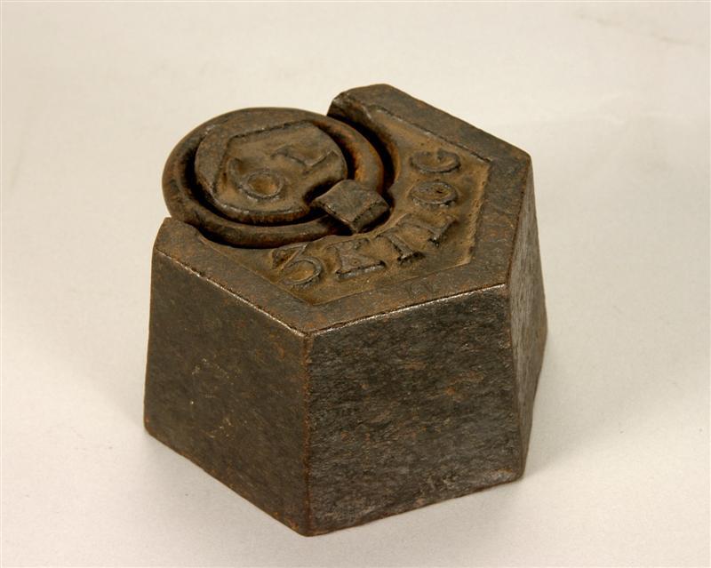 Met ring opschrift: "3 KILOG/6L aan onderzijde: gestempelde gotische letters