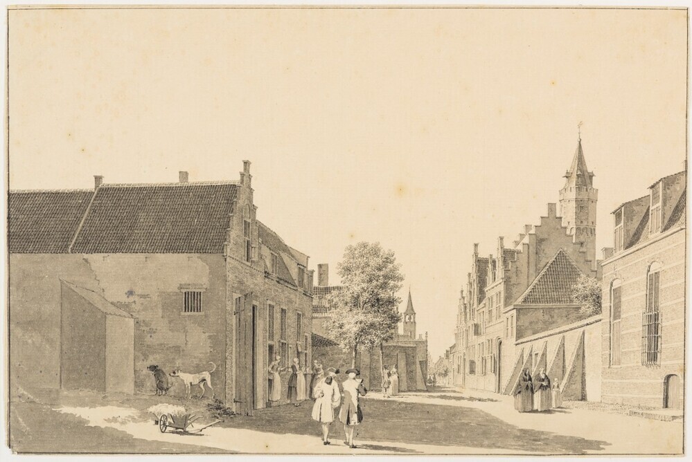 - BeschrijvingIn 1748 maakte Pronk een aantal tekeningen in en rond Bergen op Zoom.
