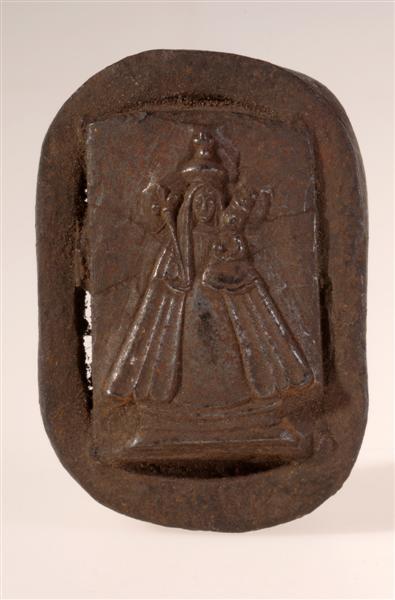 - BeschrijvingIn ijzeren band gevat rechthoekig stempel met L. Vr. beeld in hoogreliƫf, zonder tekst op sokkel. Zie ook B 7891 PG