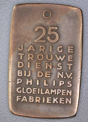Penning voor 25-jarige trouwe dienst bij Philips, in te wisselen tegen een gouden horloge