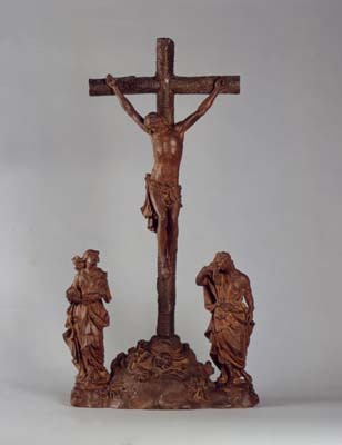 Kruisigingsgroep met Maria en Johannes onder het kruis