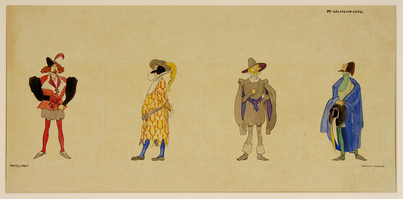 - BeschrijvingDe gelaarsde Kater V: 1. de Hovelingen I; 2. Idem; 3. Idem; 4. Idem De ontwerpen zijn in vier afzonderlijke rechthoeken geplaatst.
