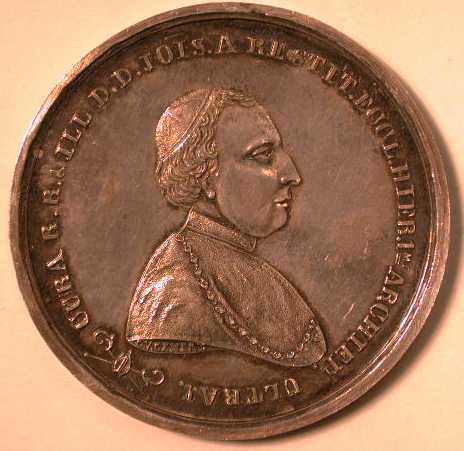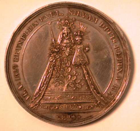 Voorzijde: Binnen een getrokken rand het beeld van Zoete Lieve Vrouw. Omschrift: AB.Ao 1629 BRUXELLES EXUL.SILVAM DUCIS REDUX. Ao 1853 Op de afsnede een bloemmotief. Keerzijde: Borstbeeld naar rechts van Mgr. Zwijsen. Omschrift: CURA R.R. & ILL D.D.JOIS. A RESTIT. ECCL.HIER 1mi ARCHIEP., twee gekruiste kromstaven, beladen met een bisschopsmijter.