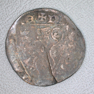 - BeschrijvingSterling met de leeuw van muntmeester Walther. Voorzijde: leeuw op een schild. Keerzijde: dubbellijnig gevoet kruis.