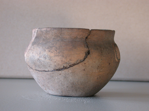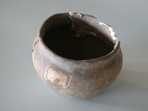 Klein potje, gedeeltelijk van Gallo-Germaans aardewerk.