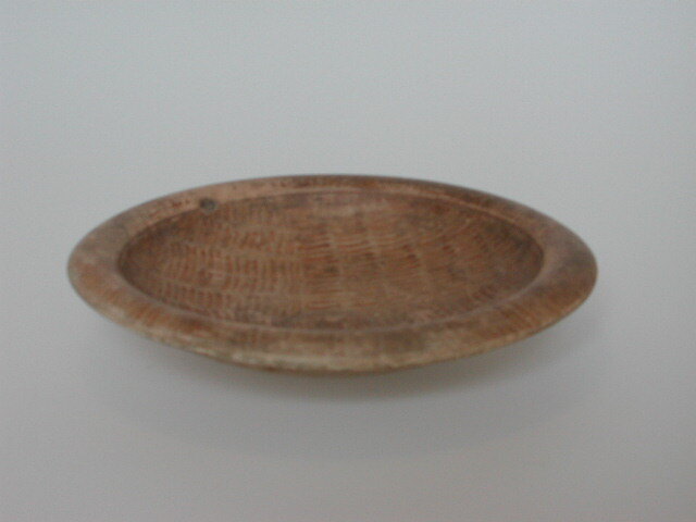 - BeschrijvingTerra sigillata schaaltje/bordje met rondgebogen rand, bolle bodem en brede vlakke standring, zonder versiering. Fel-geel beschilderd, rood-bruin gemarmerd (gekamd). Van gele aarde.