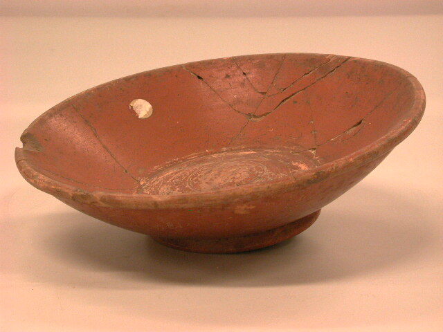 - BeschrijvingBordje van verlopen vorm, terra sigillata. Bruin-rood, mat glanzend.