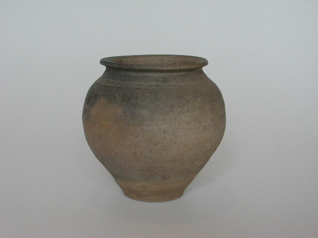 - BeschrijvingKookpot of urn. Ruwwandig ovaal met ronde rand (teruggeslagen). Aan het begin van de hals een viertal groeven. Vervaardigd van grijze klei, gesmoord. Het benedenstuk is glad gemaakt.