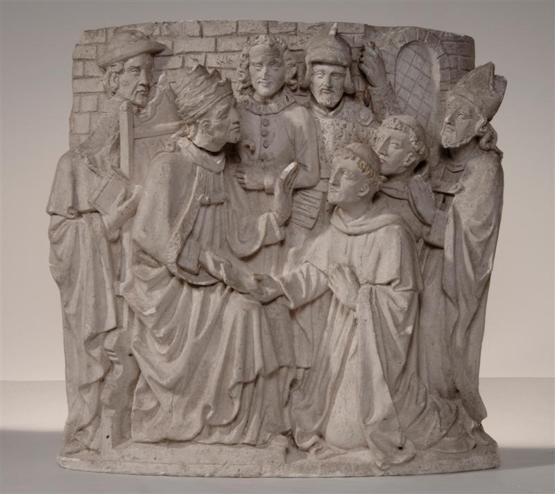 - BeschrijvingVermoedelijk wordt uitgebeeld de bevestiging van de Orde der Franciscanen door Paus Innocentius III.