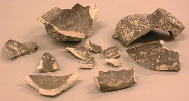 - BeschrijvingKommetje van grof aardewerk op vrij hoge voet, vanwaar aanvankelijk in een rechte lijn de buik begint. Hoger wordt de buik naar binnen gebogen en gaat daarna weer over in de wijder wordende rand. Het kommetje is vervaardigd van lichtgrijze klei, met een donkergrijze laag. Van Hoek spreekt van 'Belgisch' aardewerk.