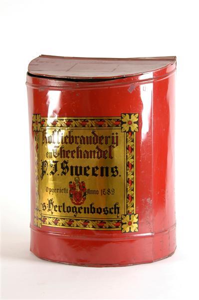 - BeschrijvingVan koffiebranderij en theehandel P.J. Sweens, 's-Hertogenbosch. Opschriften: Koffiebranderij en theehandel P.J. Sweens 's-Hertogenbosch opgericht Anno 1782.