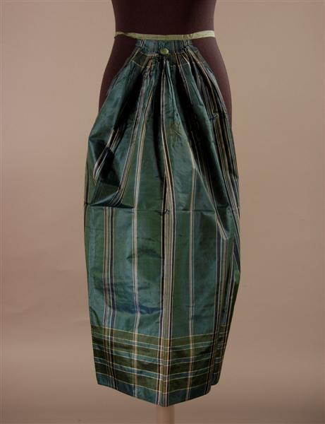 Groen/blauw/grijs gestreept schortje, omstreeks 1890 gedragen te Ravenstein
