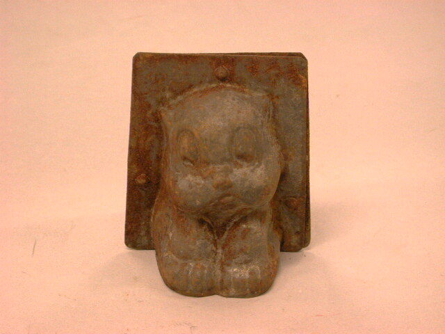 - BeschrijvingTweedelige vorm om chocoladehond te gieten.