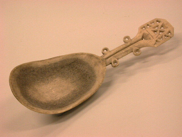 Lepel met korte gedecoreerde steel: Het blad van de lepel is gedecoreerd met een hert-figuur (rendier) (gekerfd).