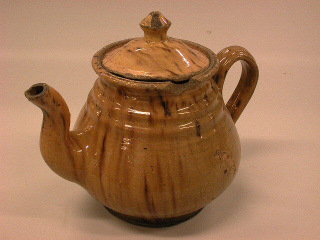- BeschrijvingTheepot met los deksel. Aan bovenzijde drie geprononceerde ronde draairingen.