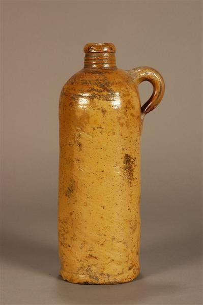 - BeschrijvingKruik met geprofileerde hals en ronde mondrand. Deuken aan onderzijde. In de handel gebruikt voor mineraalwater, huishoudelijk voor zelfgestookte jenever of als warmwaterkruik.