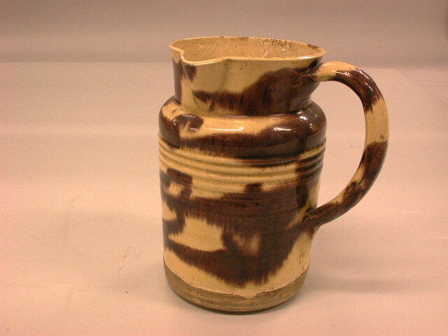 Cilindrische kan met tamelijk lomp oor.