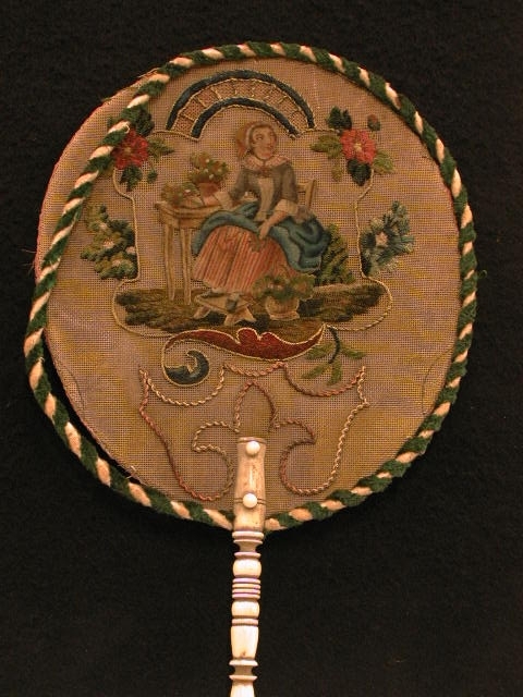 Ovalen waaier met ivoren of benen handvat