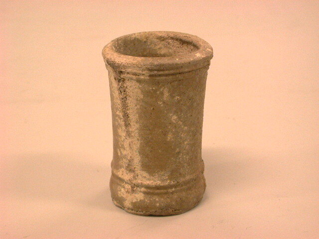 - BeschrijvingPlatte bodem met daarboven 2 scherpe richels. Lichaam in midden glad en ovaal, naar uiteinden breder Twee scherpe richels onder mondrand Lichtgrijze scherf Rossig op bodem Resten van inhoud (?) aan binnen- en buitenzijde.