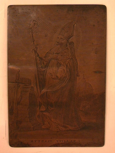 Koperplaat met gegraveerde voorstelling van de heilige Blasius