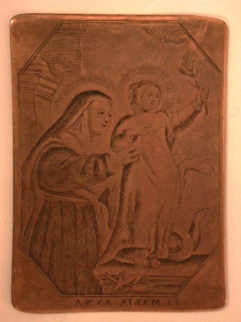 Koperplaat met gegraveerde voorstelling van de heilige Anna met Maria