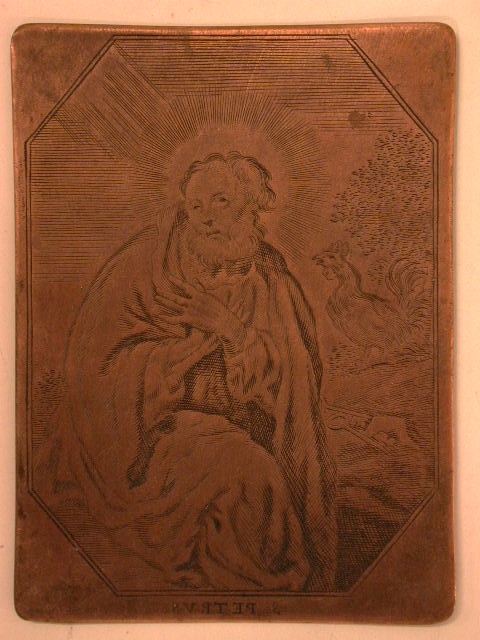 Koperplaat met gegraveerde voorstelling van de heilige Petrus