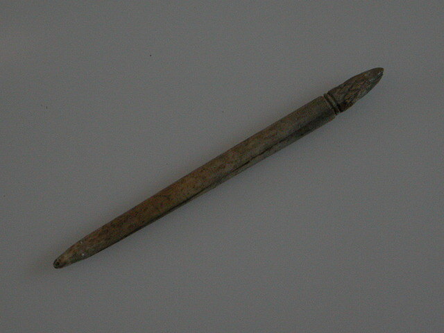 Haarnaald stift. Waarschijnlijk Romeins. De knop is versierd met ingesneden ruitjes