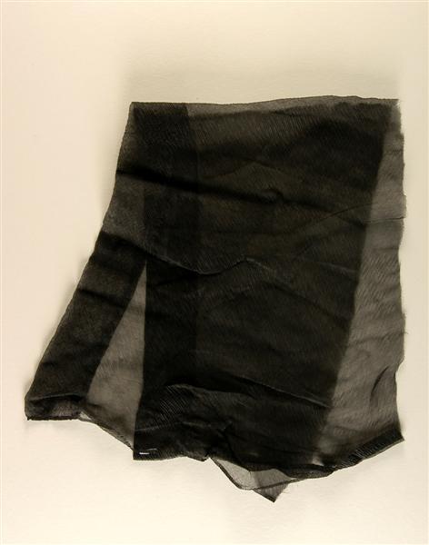 Afgeknipt fragment van een rouwvoile met brede zoom.