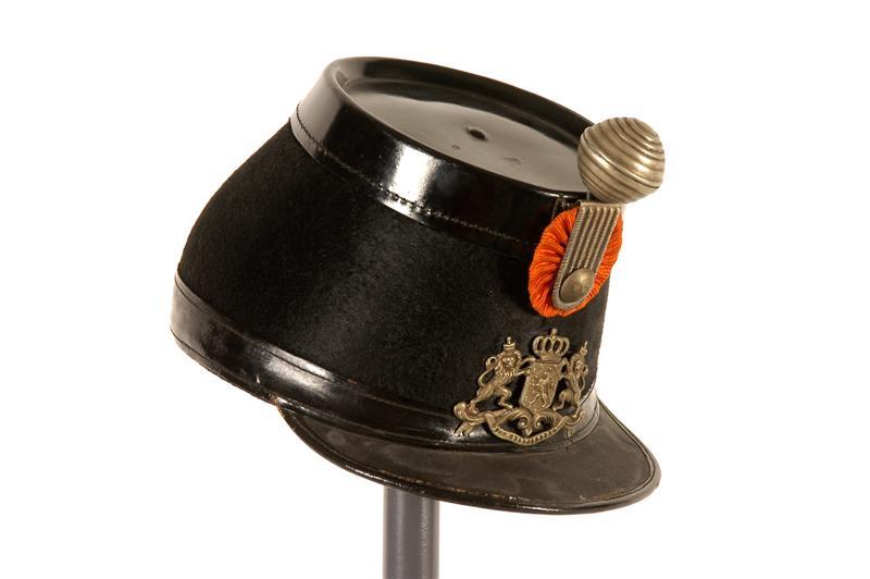 Sjako van een (onder)officier van de dienstdoende schutterij van Waalwijk, ca 1900. Model 5 augustus 1868 (vgl. inv.nrs. 11747.017-020 ?).