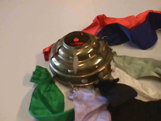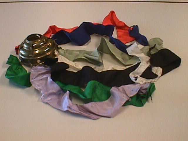 Vaandelstokbekroning met zeven gekleurde linten van de gymnastiekvereniging Kunst & Kracht