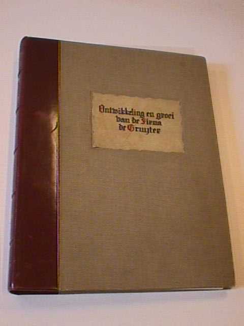 Album als een fotoalbum, met daarin twee houten en zeventig papieren bladen bijeen gehouden door twee open te klappen metalen ringen. Bij het album hoort een plastic hoes met daarin een oorspronkelijke advertentie voor het proefdrinken van KWAKER OATS. Op de papieren vellen staat de geschiedenis van de firma De Gruyter beschreven, inclusief twee foto's. Aan de binnenkant van de omslag is een papier geplakt met daarop de tekst AANGEBODEN AAN DE DIRECTIE VAN P. DE GRUYTER EN ZN. N.V./J.R. PELS. Op de rug van het album staat de tekst ONTWIKKELING EN GROEI VAN DE FIRMA DE GRUYTER I.