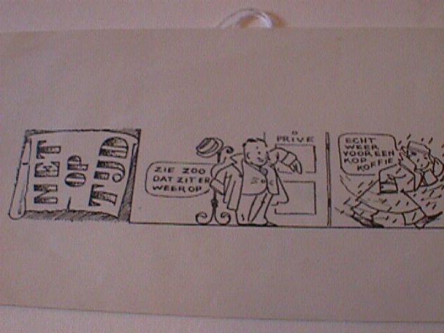 Papieren stripverhaal in zwart-wit tekeningen over De Gruyter's koffiesurrogaat. Oorlogsjaren.