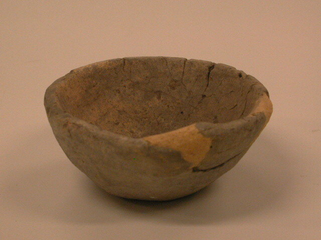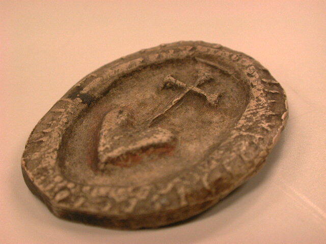 Klein Gallo-Germaans aardewerk potje. Hierbij een gelijktijdig gevonden Christus monogram. Falsificatie?