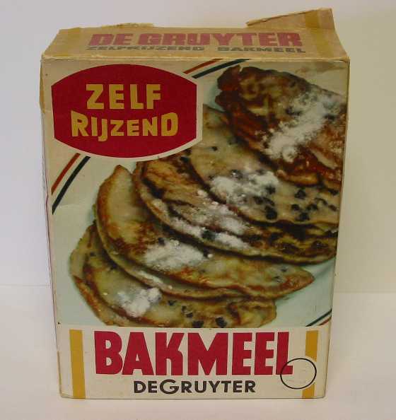 - BeschrijvingKartonnen verpakking voor De Gruyter zelfrijzend bakmeel, 500 gram. Op de voorzijde is een schaal met daarop dubbelgevouwen pannenkoeken te zien en op de achterzijde gesneden kruidkoek. Op de zijkanten staan kookaanwijzingen. Het pak is vol.