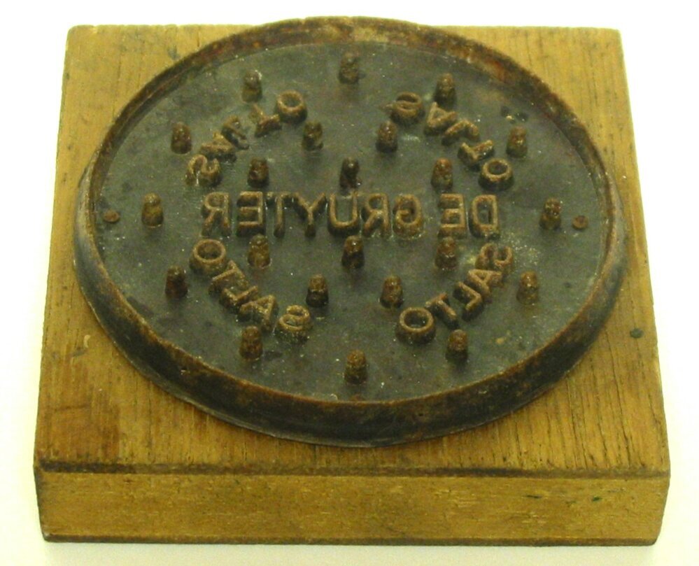 - BeschrijvingRonde kunststof stempel op een vierkant houten blok. Gebruikt voor het stansen van saltokoekjes uit deeg.