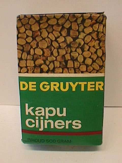 - BeschrijvingKartonnen verpakking gevuld met kapucijners, inhoud 500 gram. Op de ene zijkant staat de bereidingswijze, op de andere de voedingswaarde. Bij de voedingswaarde is een logo in de vorm van een anker afgebeeld. Op het bovenste deel van het pak zijn kapucijners afgebeeld. Het onderste deel is hoofdzakelijk groen. Het pak is vol.