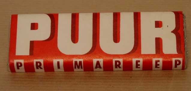 - BeschrijvingDe Gruyter primareep puur, verpakt in zilverpapier en met een papieren wikkel, puur chocolade. De wikkel is rood met grote witte letters er op.